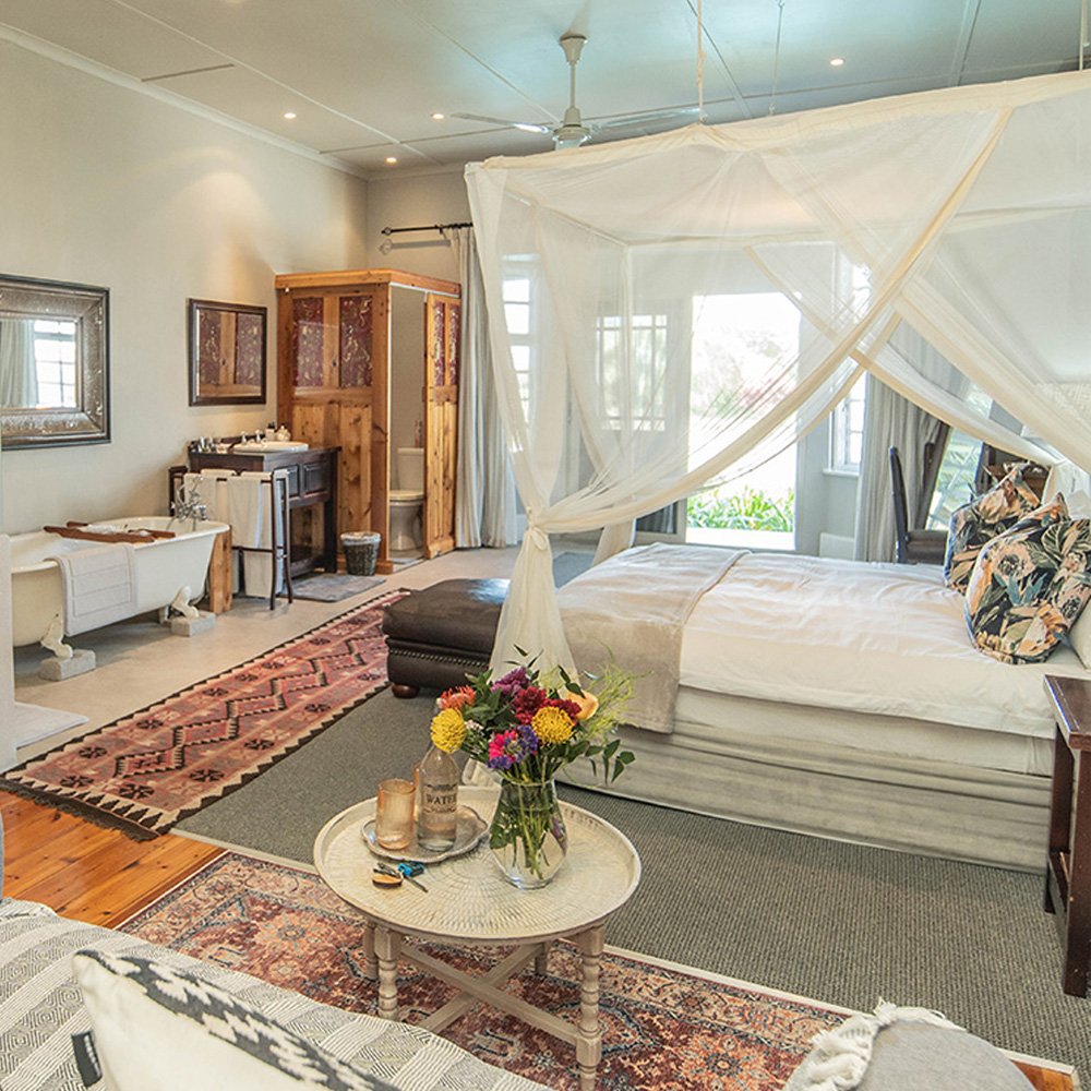 Broadlands Country House offers five spacious, stylishly decorated suites, each with its own private entrance. All suites include tea- and coffee-making facilities, bathrobes, a safe, air conditioning, a ceiling fan, electric blankets, a mosquito net, and 100% percale linen. Wi-Fi is available throughout the house